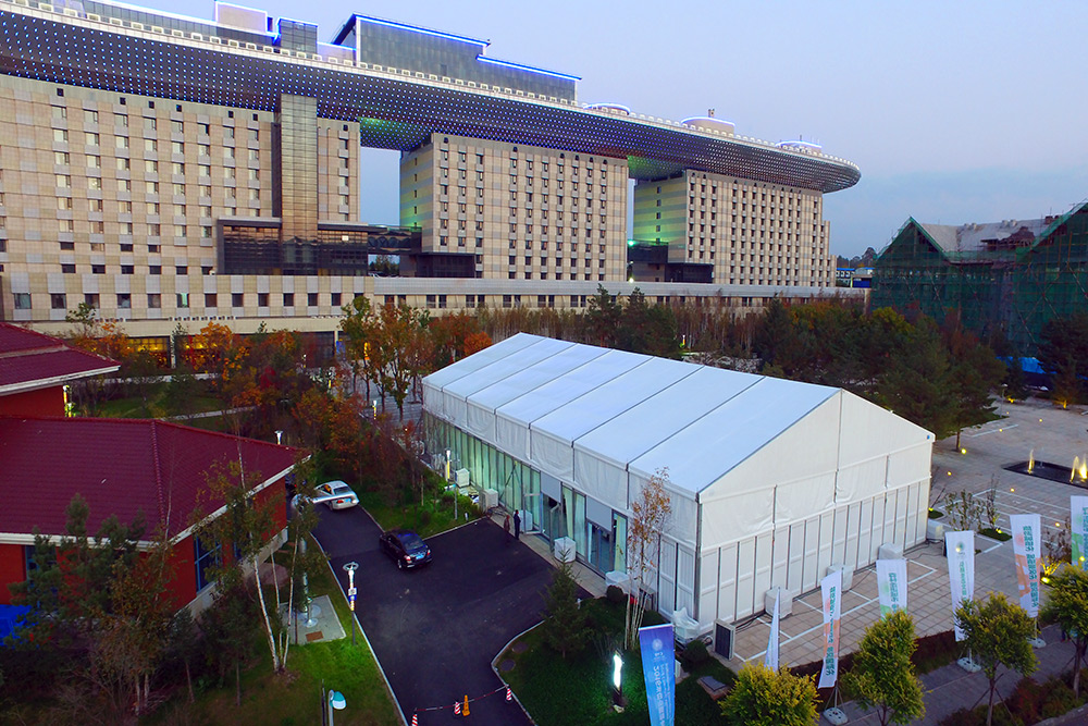 高山篷房,搭建快速靈活、堅固可靠,做到3米~50米任意跨度內無支撐障礙,搭建快速靈活、地形適應性強、結構組合多樣,廣泛應用于戶外展覽、商業活動、體育賽事、婚禮宴會以及物流倉儲、防災救災等領域。輔以高山研發的篷房配套模塊如除霾、防寒等設備設施,應用更廣,讓你的戶外活動擁有很多想象。